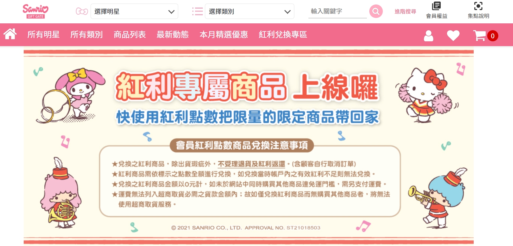 ▲Sanrio紅利商城專區,該區商品全部都只能透過點數兌換。
