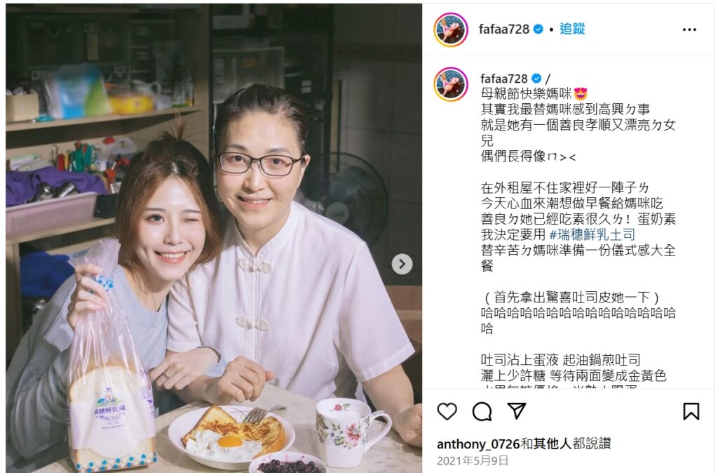 統一集團旗下的瑞穗吐司在母親節期間推出別具溫情的創意活動,邀請 IG 網紅使用瑞穗吐司,製作一份早餐以表達對媽媽或老婆的愛意,成功在社群中掀起熱烈討論。