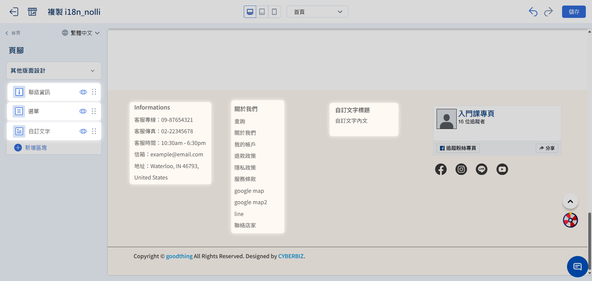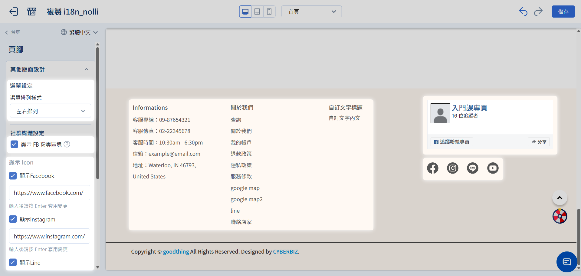 - FB 粉專:支援將 FB 粉專外掛嵌入頁腳,提升社群互動率。