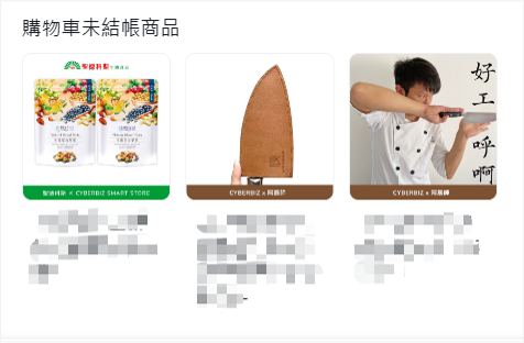 會員已加入購物車、但尚未購買之商品,將顯示圖片與商品名稱
