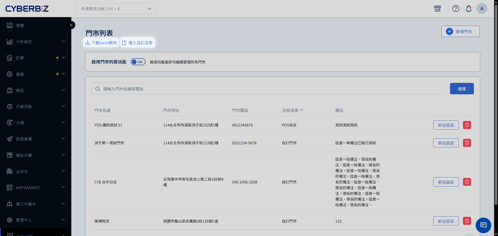 後台路徑 : 「APP 功能」→「APP門市列表」